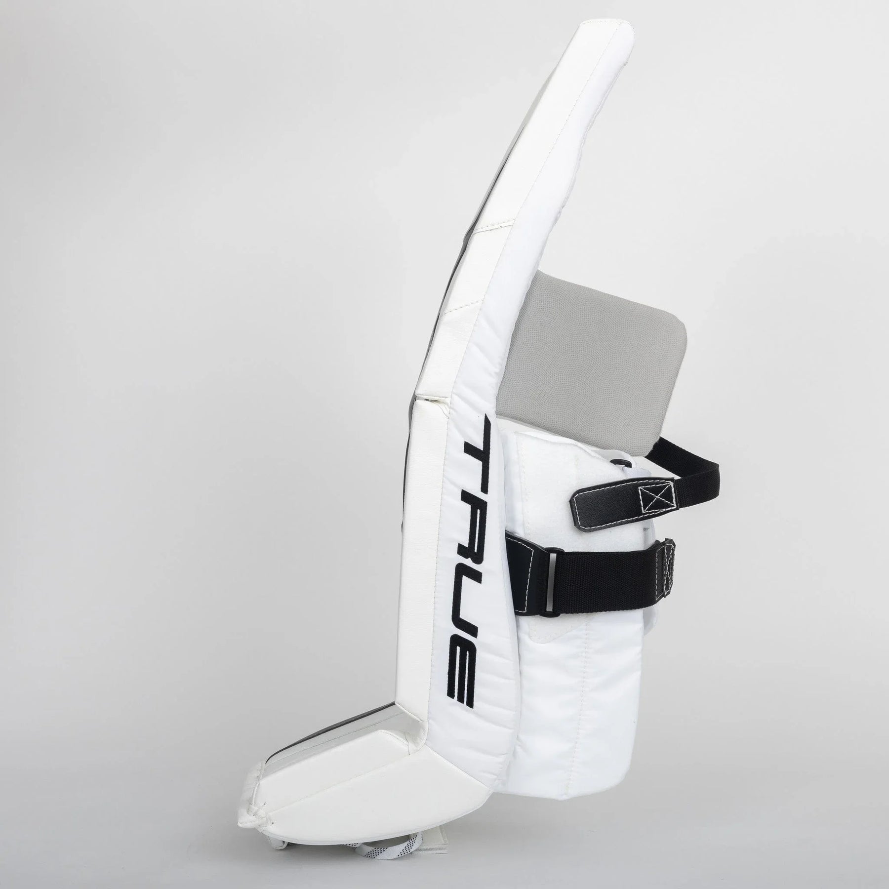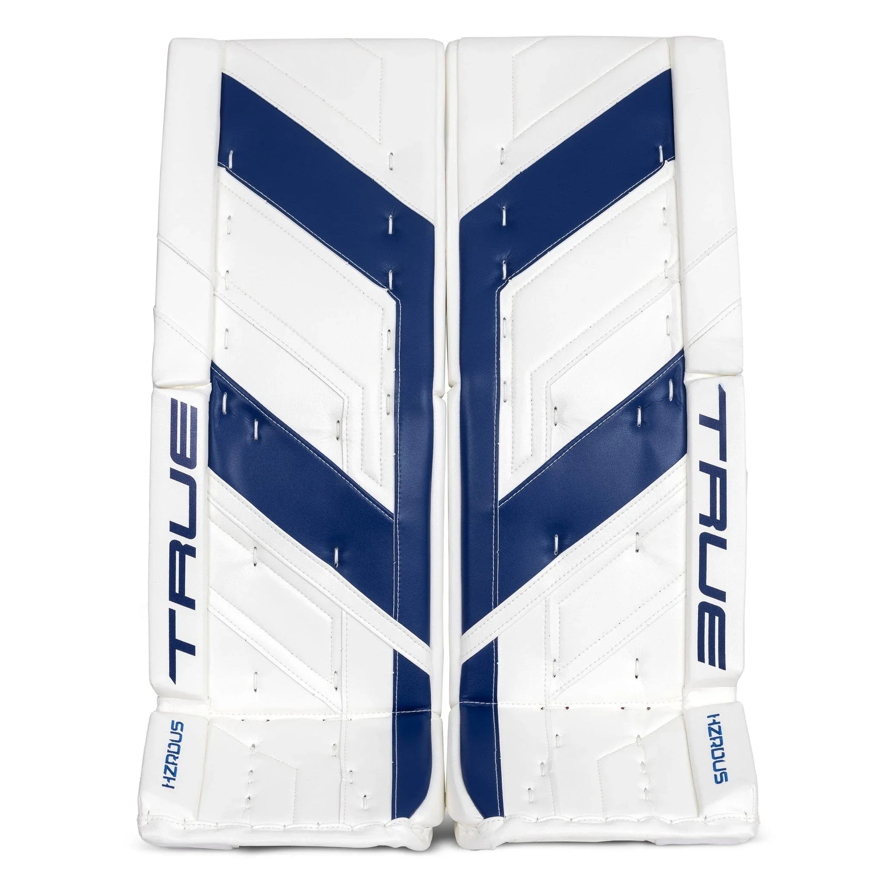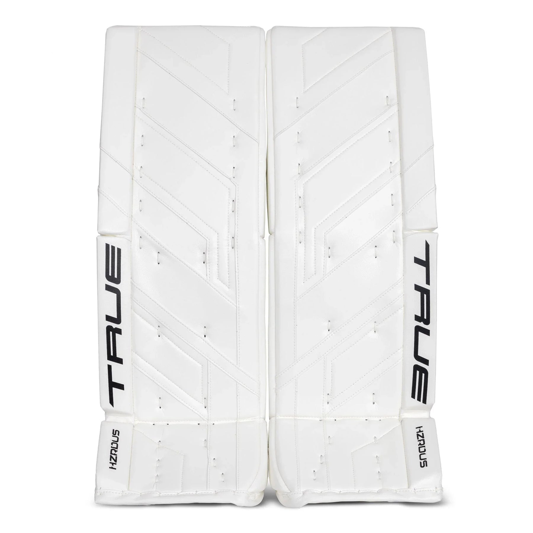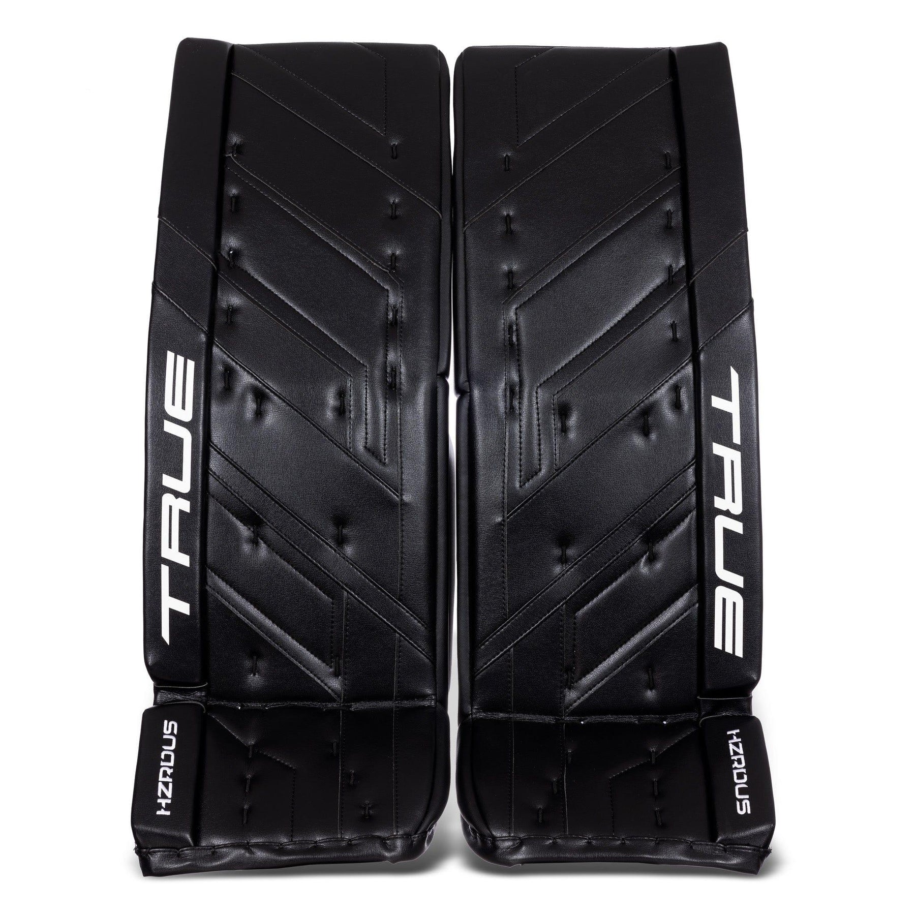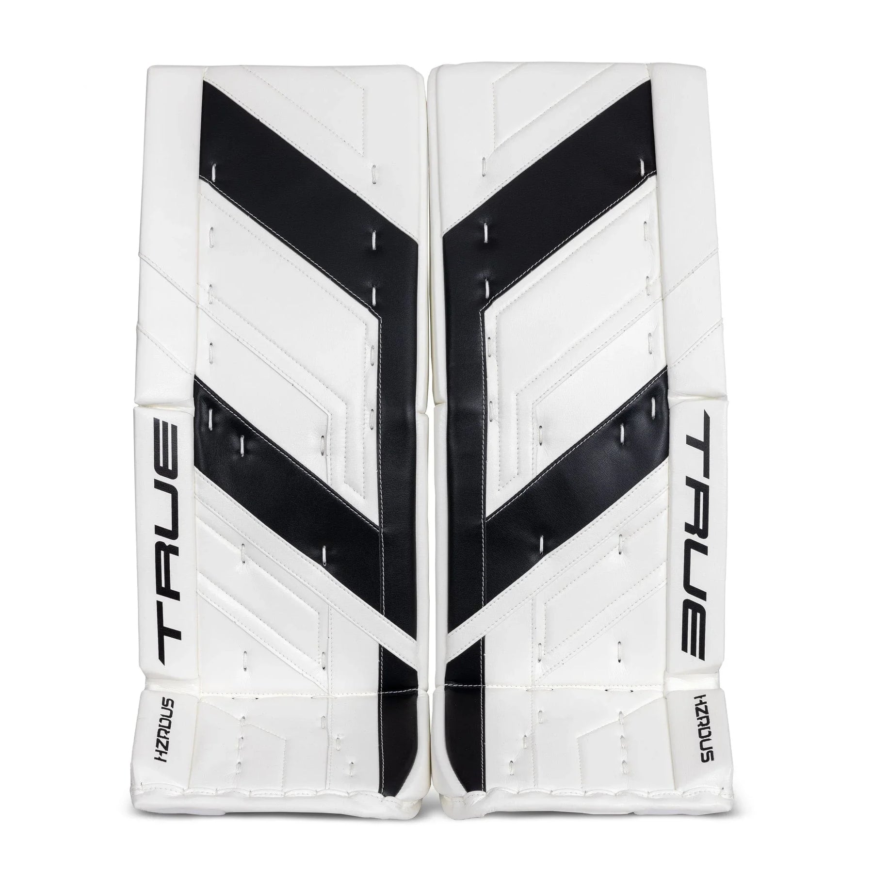 The TRUE HZRDUS PX4 Senior Leg Pads are available in sizes 32"-35", all with a +2" option. They also come in White/Blue, White/Black, White, and Black.
