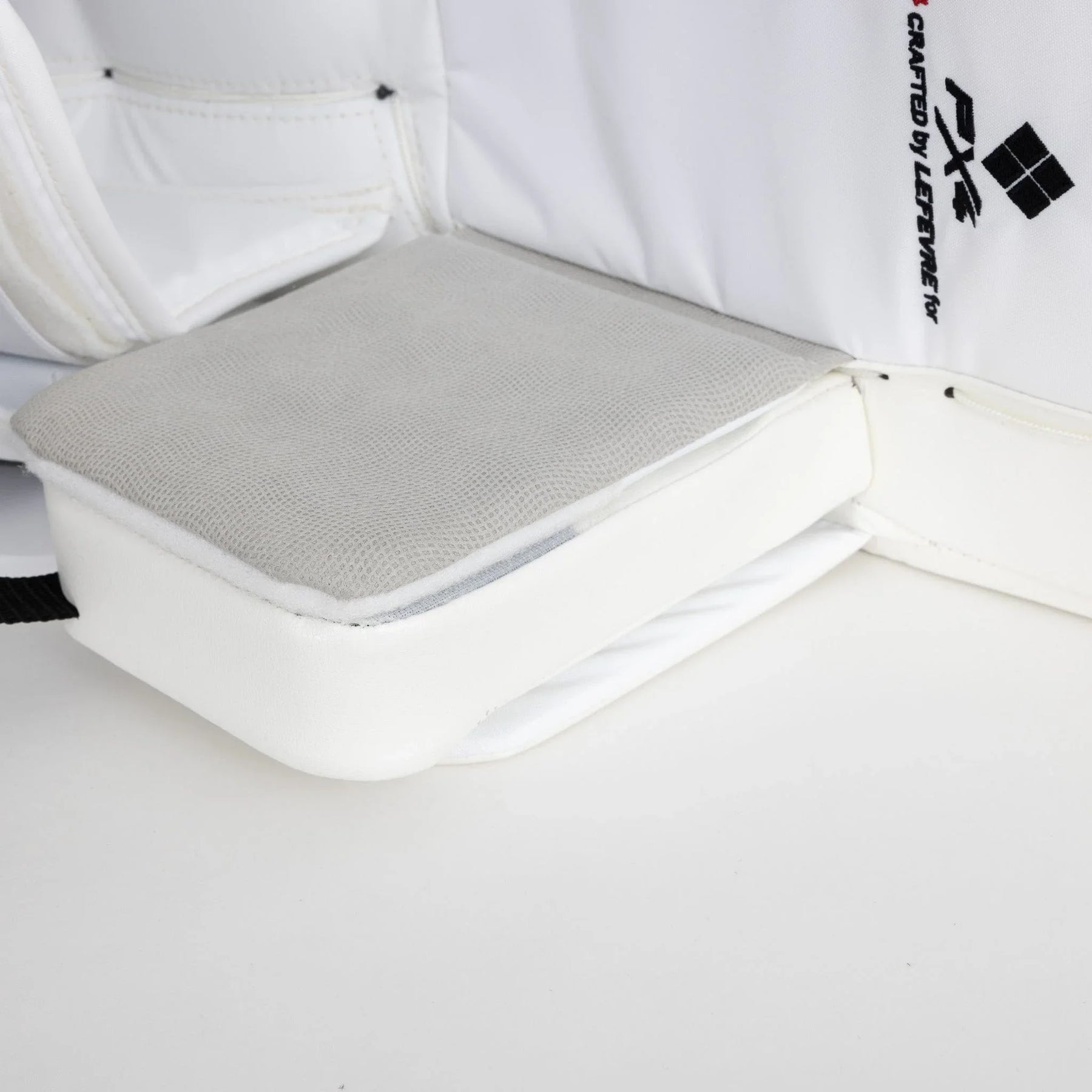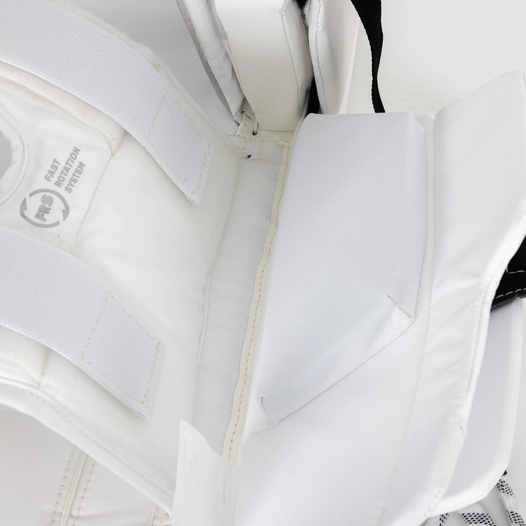 The core features a single break (below the knee). This provides unparalleled agility and flexibilty with the single break core below the knee. This innovative design allows for for quick movements, precise positing, and lightning-fast reactions. It is also 30% stiffer due to reinforced composite thigh rise for tight butterfly and RVH seal.