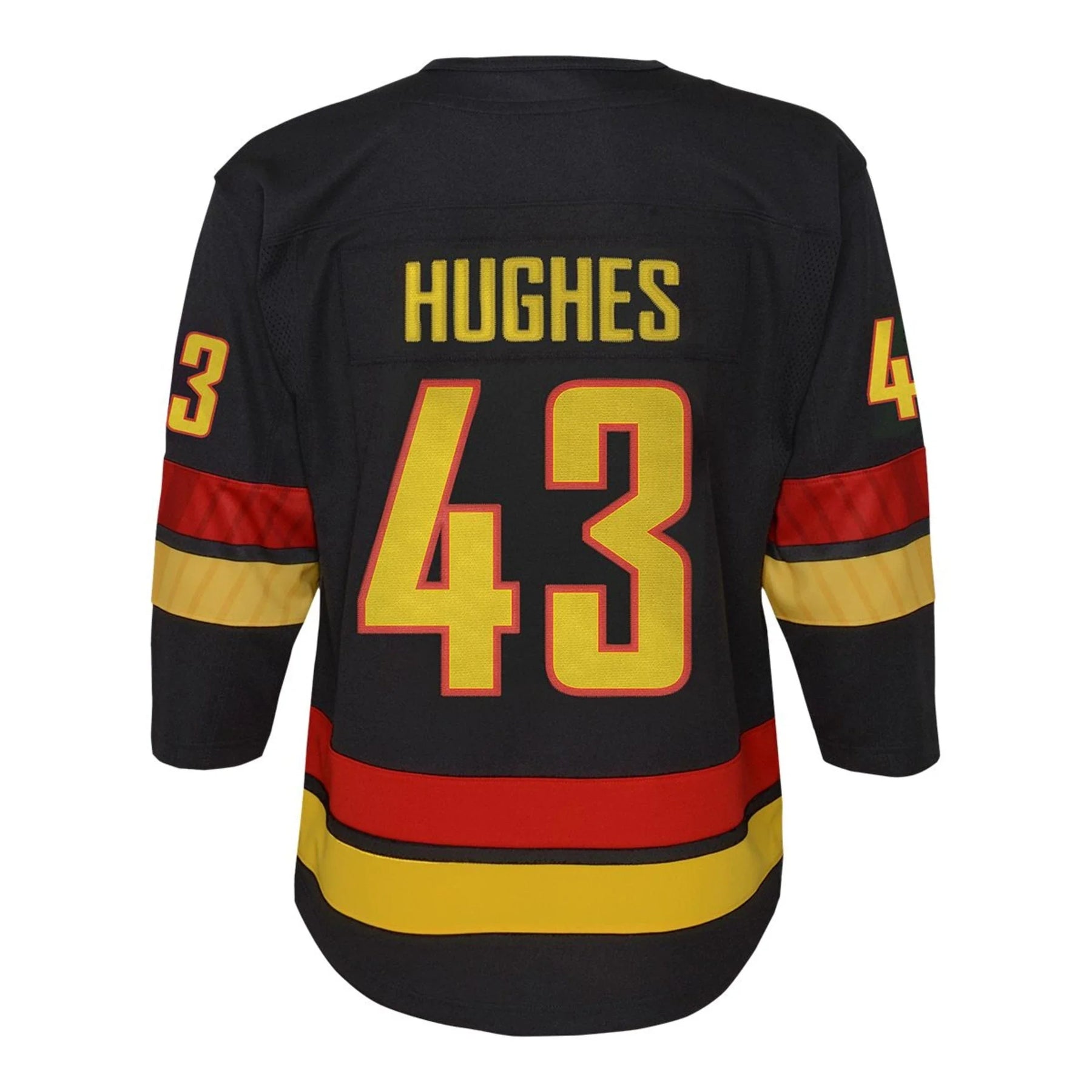 This Vancouver Canucks Third Skate Quinn Hughes Premier Jersey is a spirited piece to have for game day. Crisp Vancouver Canucks graphics match those worn by players on the ice, making your kiddo look like a member of their favorite team. Everyone will know you're raising your youngster to be a die-hard fan when they sport this Vancouver Canucks jersey.