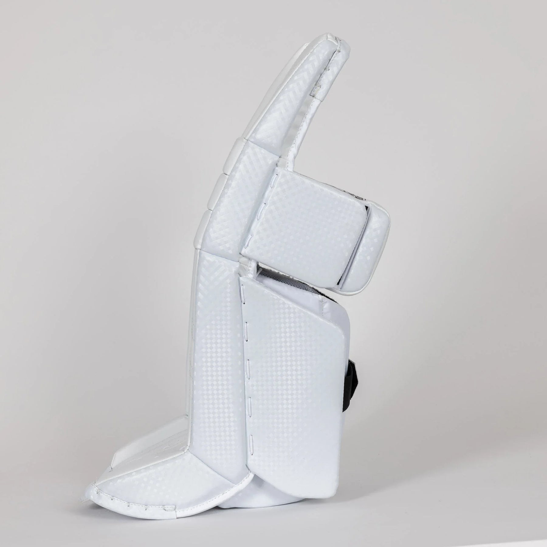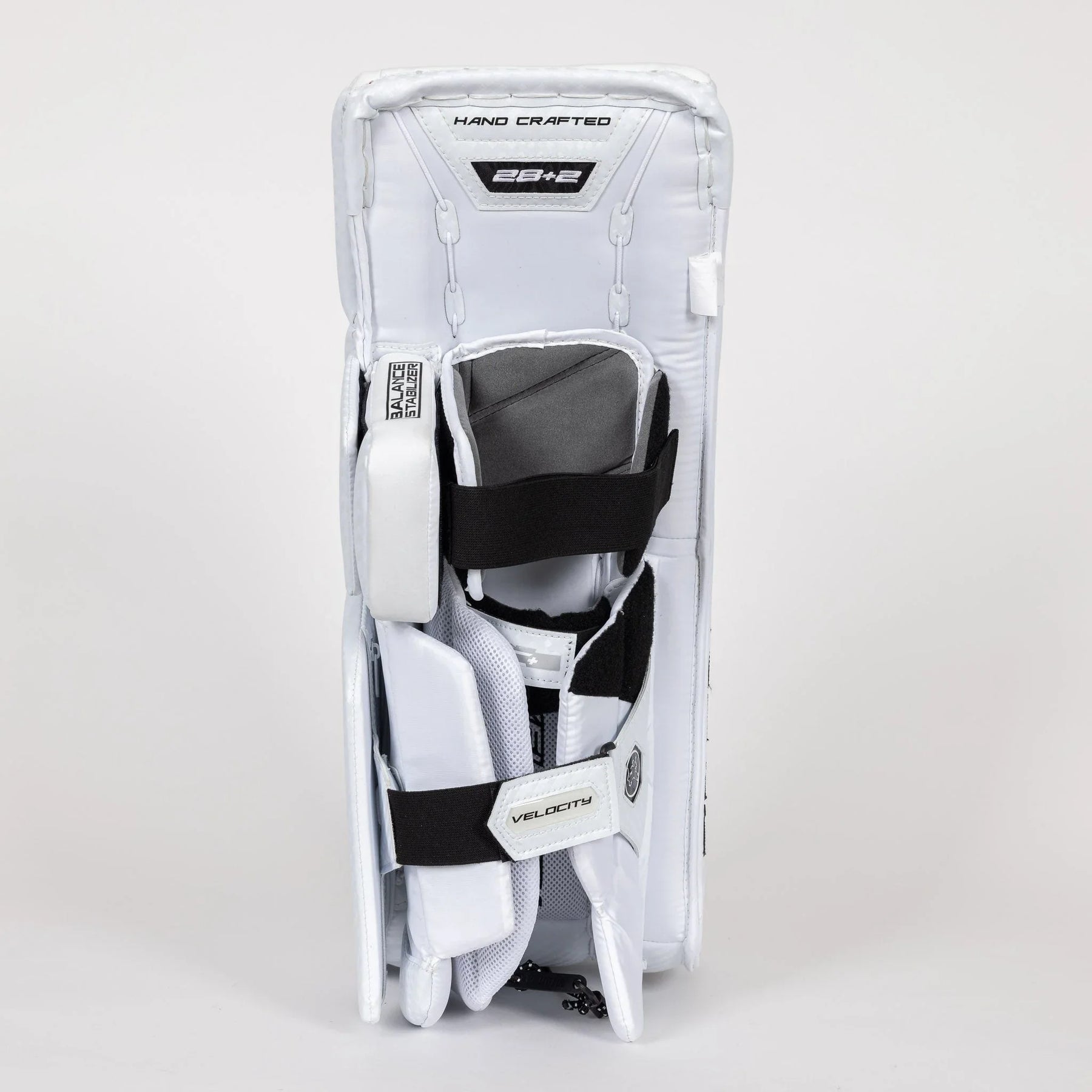 The pad's inner knee cradle pad is adjustable, and a two-way adjustable knee cradle strap is included. The inner knee landing surface is wider, and the pad incorporates a three knee roll design. The inner core features an active rebound design, and the scoop bend enables easier flex. The outer knee cradle pad can be adjusted or removed. The instep is reinforced over the skate and has a flat profile for quicker pad rotation. The V10 Junior Goalie Leg Pads comes in sizes 24+2″, 26+2″, and 28+2″.