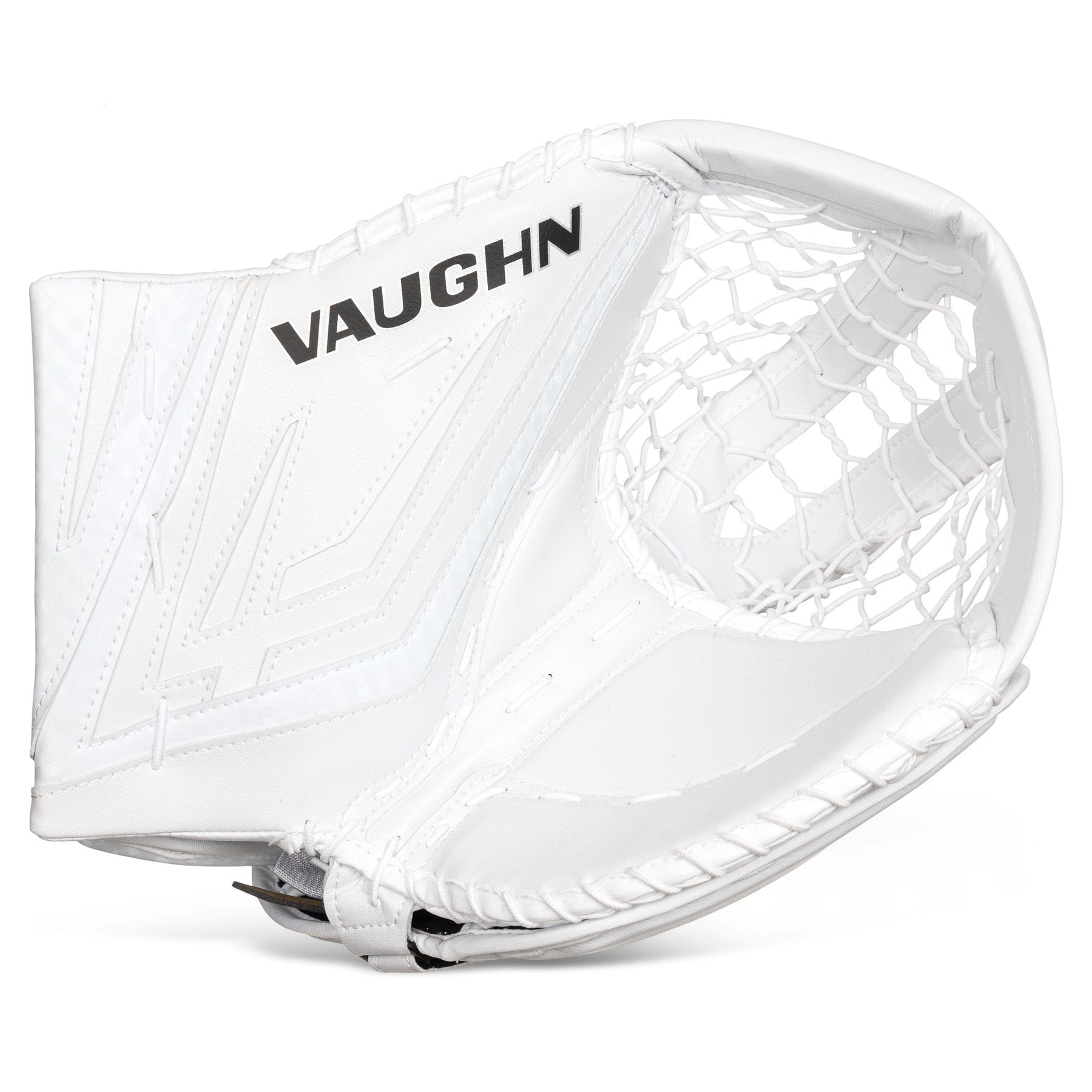 The Vaughn Velocity VX1 Pro Senior Goalie Catcher is available in a regular catch hand in White, White/Black, White/Blue, Black, and White/Red. Additionally, this catcher has a full-right option for those who catch with their right hand that comes in White/Black.