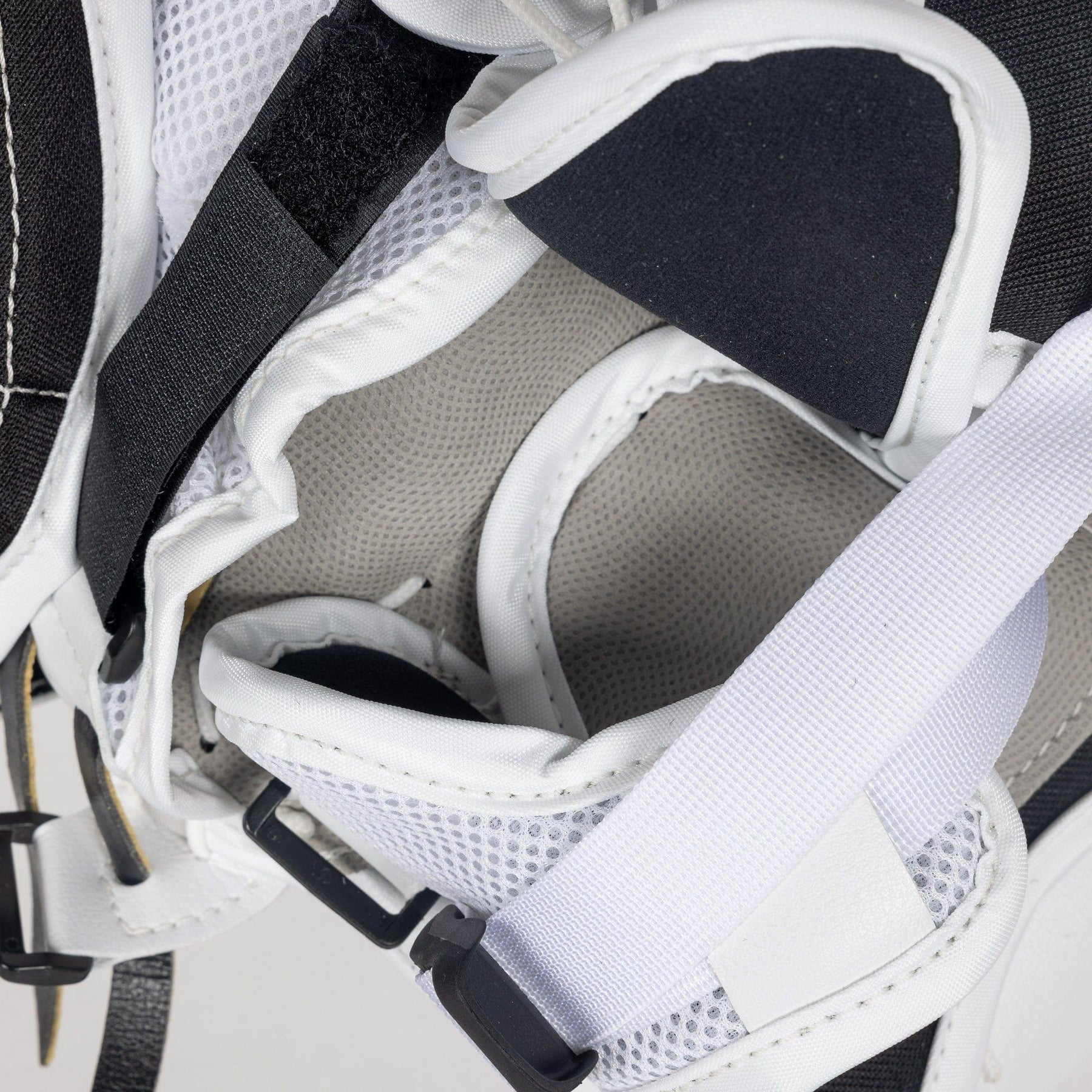 Next you want to ensure the adjustable wrist strap goes directly across the wrist bone, and has minimal to no interference with your chest protector. The goaltender should be able to swivel their wrist to accommodate a range of save selections without any restrictions from the chest protector.