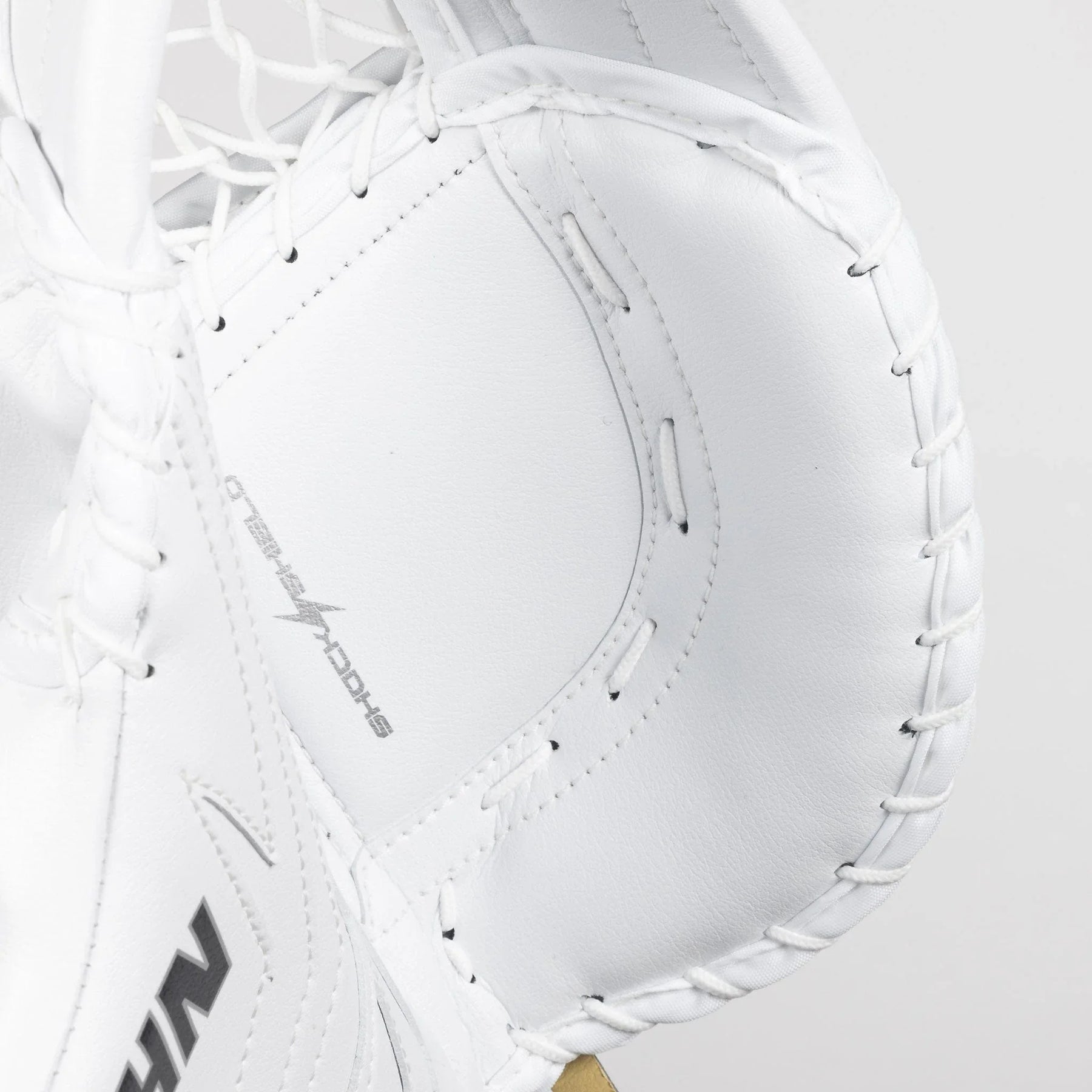Experience a lighter feel and quicker action with the even weight distribution that defines this state-of-the-art glove. Bid farewell to traditional eyelets on the perimeter, as our glove embraces a modern approach for increased functionality. The incorporation of shock shield foam in the palm ensures unparalleled hand impact protection, allowing you to face shots with confidence.