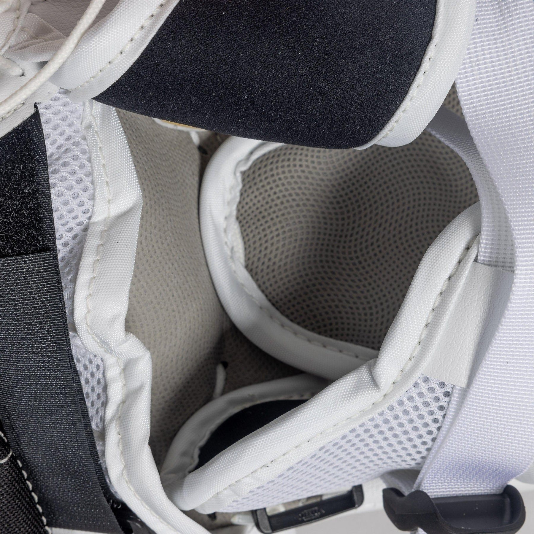 Next you want to ensure the adjustable wrist strap goes directly across the wrist bone, and has minimal to no interference with your chest protector. The goaltender should be able to swivel their wrist to accommodate a range of save selections without any restrictions from the chest protector.