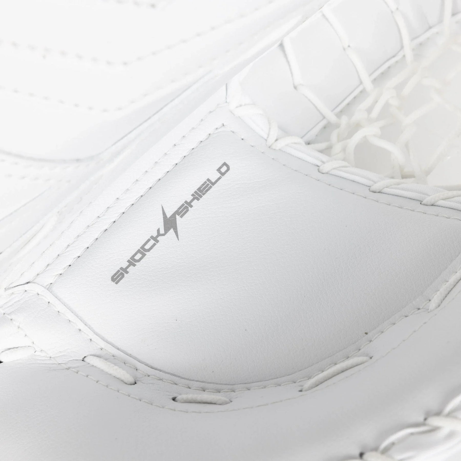 Experience a lighter feel and quicker action with the even weight distribution that defines this state-of-the-art glove. Bid farewell to traditional eyelets on the perimeter, as our glove embraces a modern approach for increased functionality. The incorporation of shock shield foam in the palm ensures unparalleled hand impact protection, allowing you to face shots with confidence.