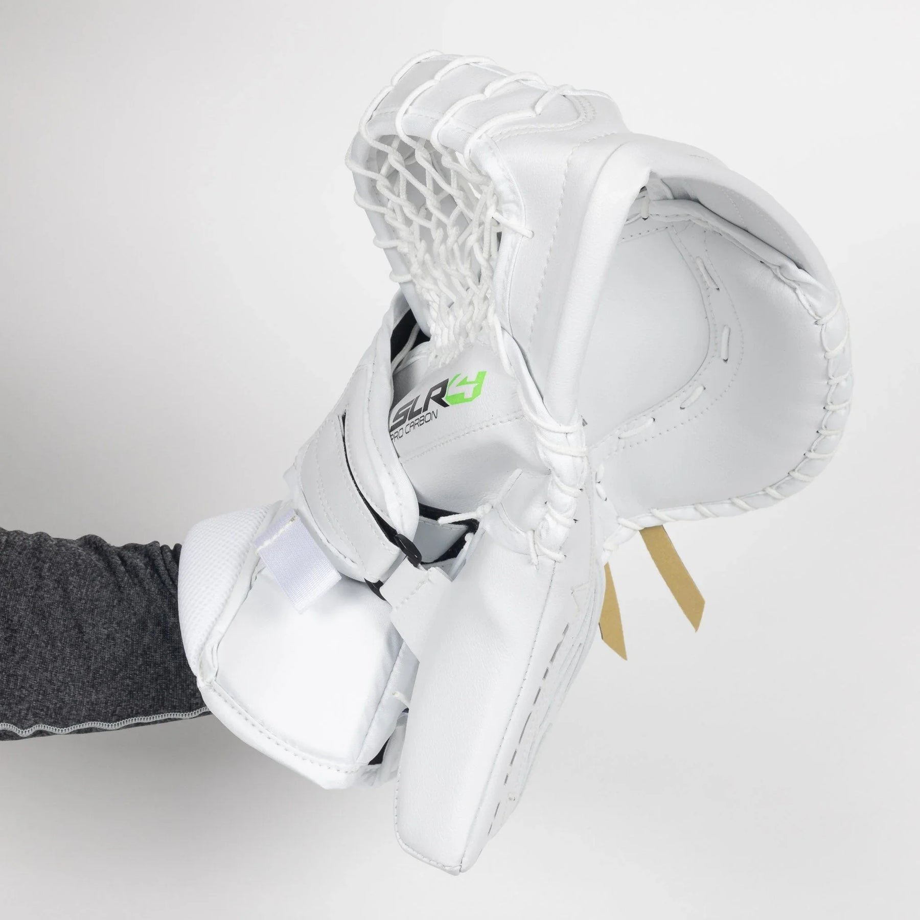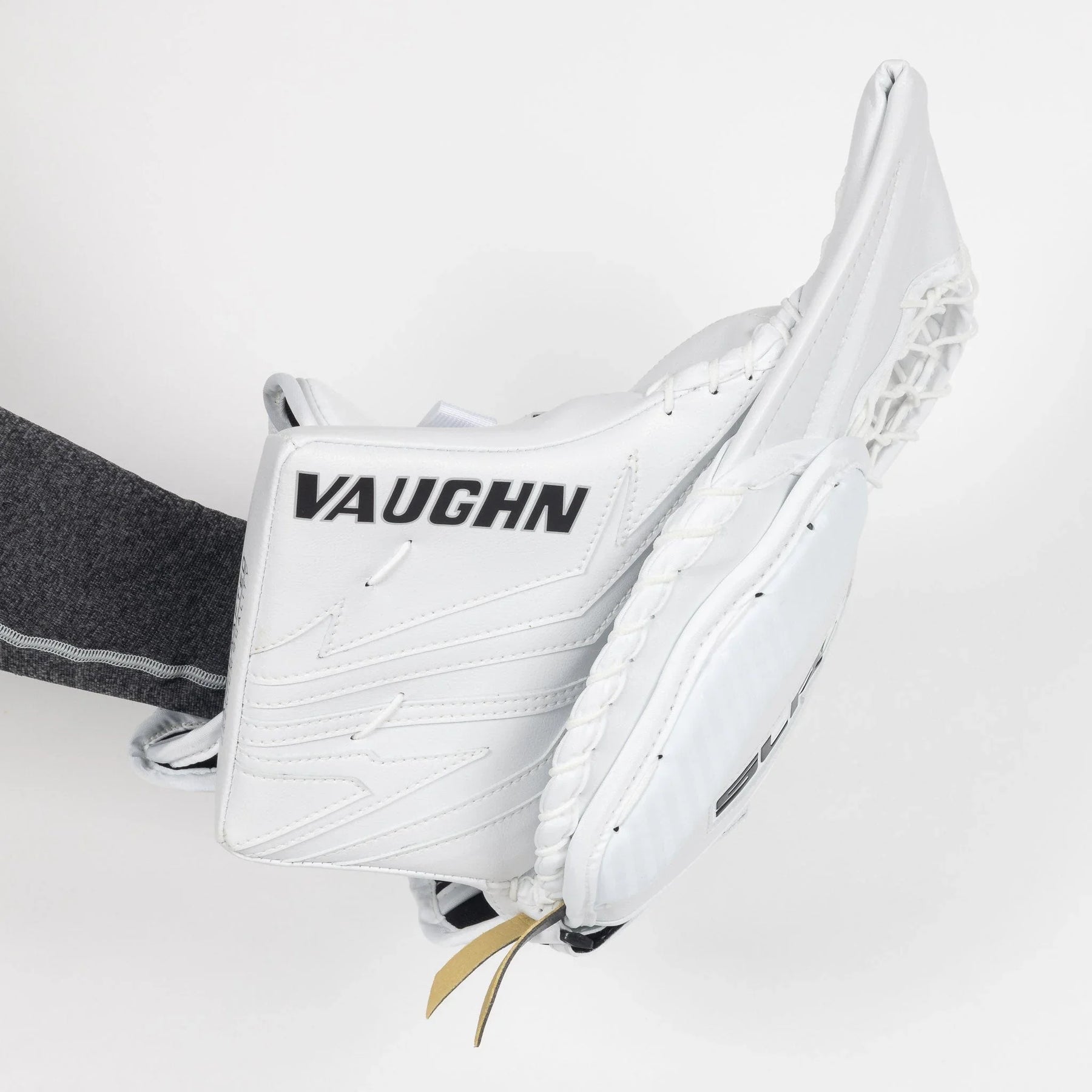 Best price guaranteed.The Vaughn Ventus SLR4 Pro Carbon Catcher is a revolutionary goalie glove meticulously crafted with cutting-edge features to elevate your game. The new design and style boast a wider, more open shape, setting a new standard for performance and comfort on the ice.