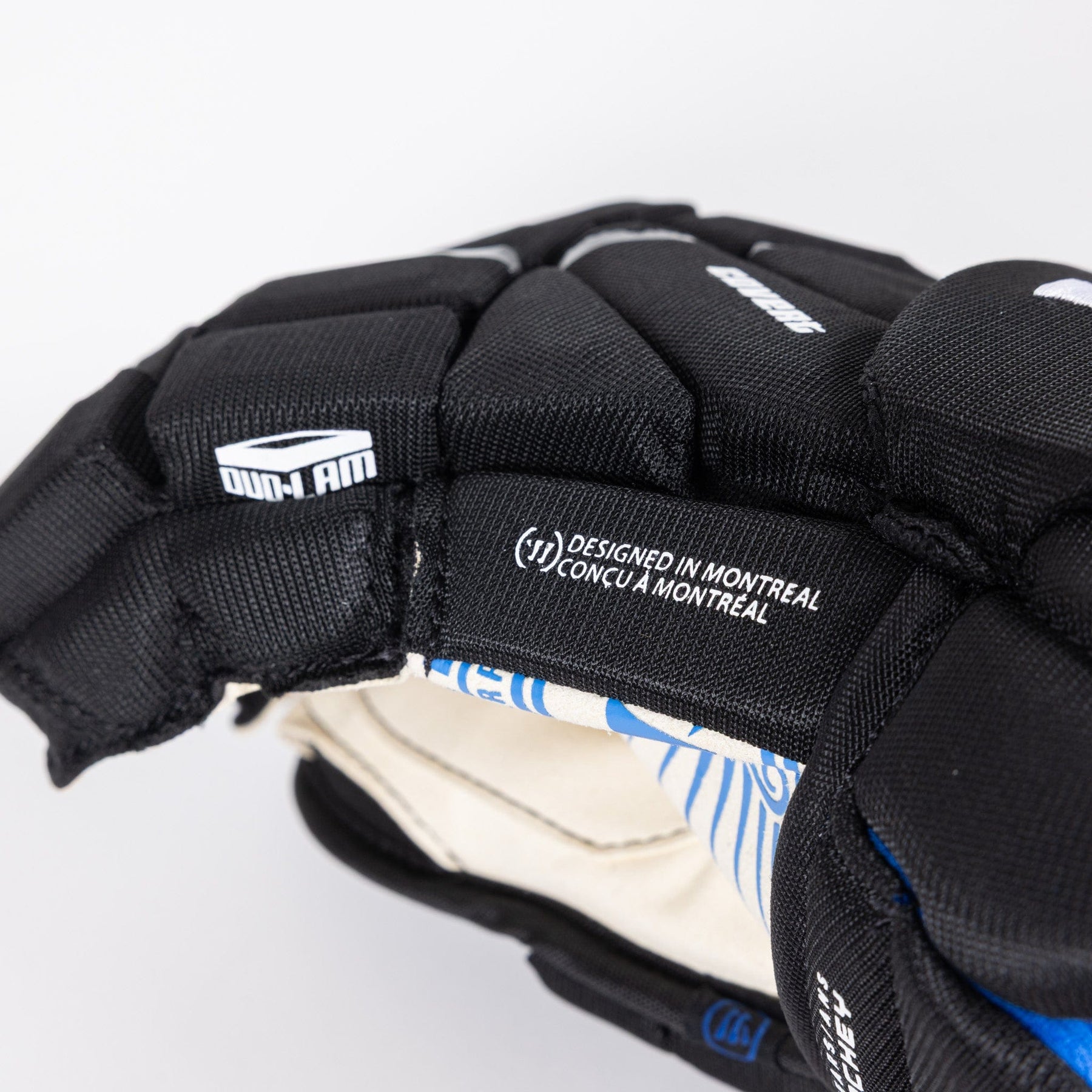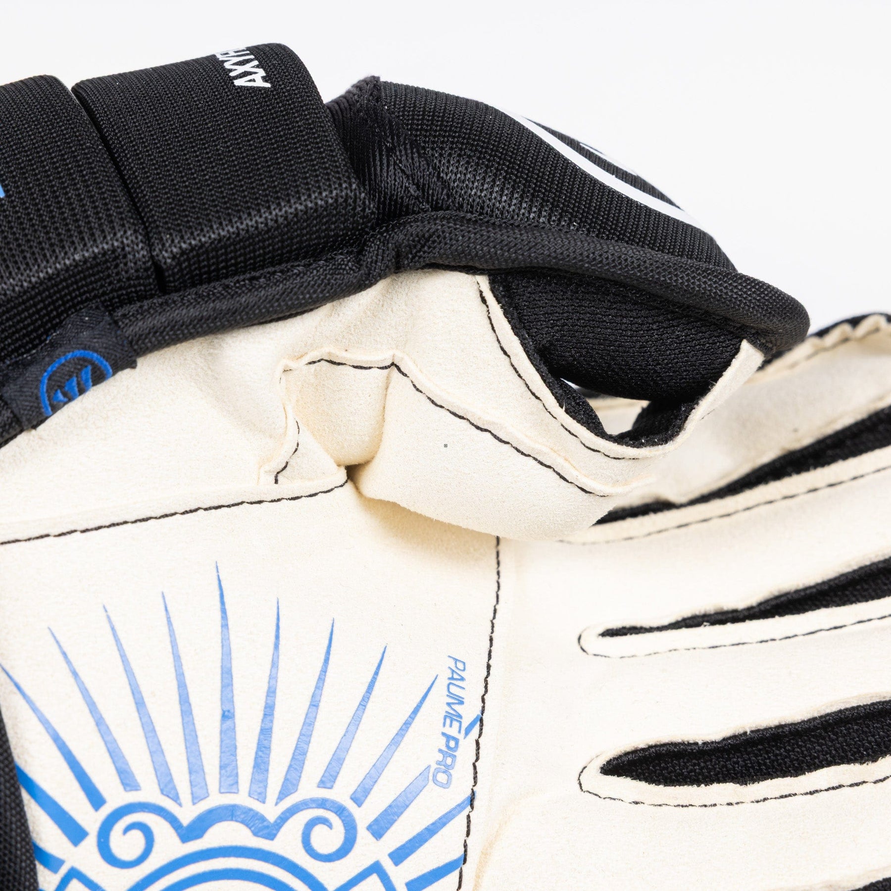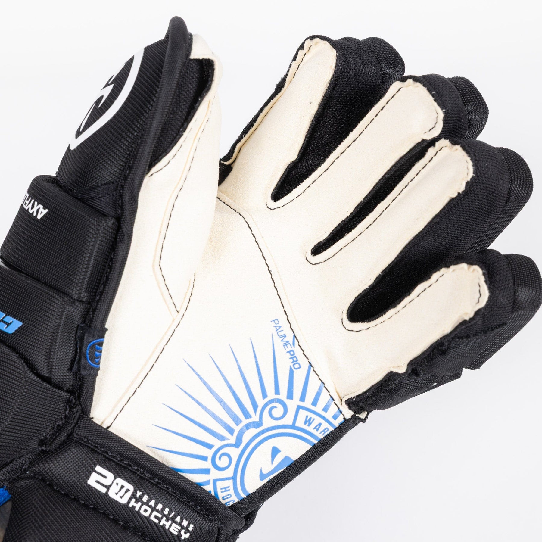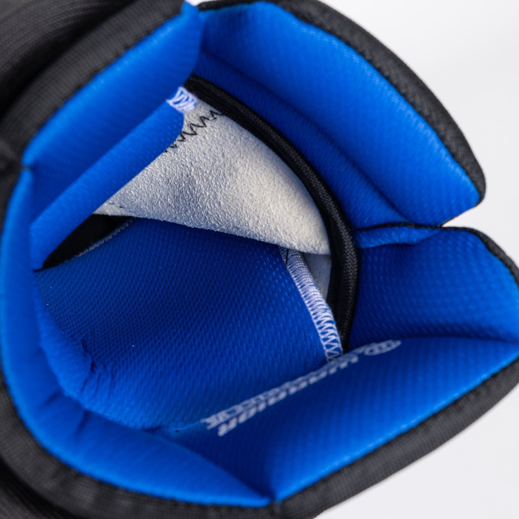 The inside of these gloves are lined with a war-tech FNC liner. Powered by Polygiene so players can always stay cool, dry and odor free on the ice. These gloves also have a buttersoft feel, with their responsive Lycra gussets, Axyflex thumb design, and anatomical stretch backhand, these provide the gloves with a buttersoft feel inside that makes them feel game-ready right out of the box.