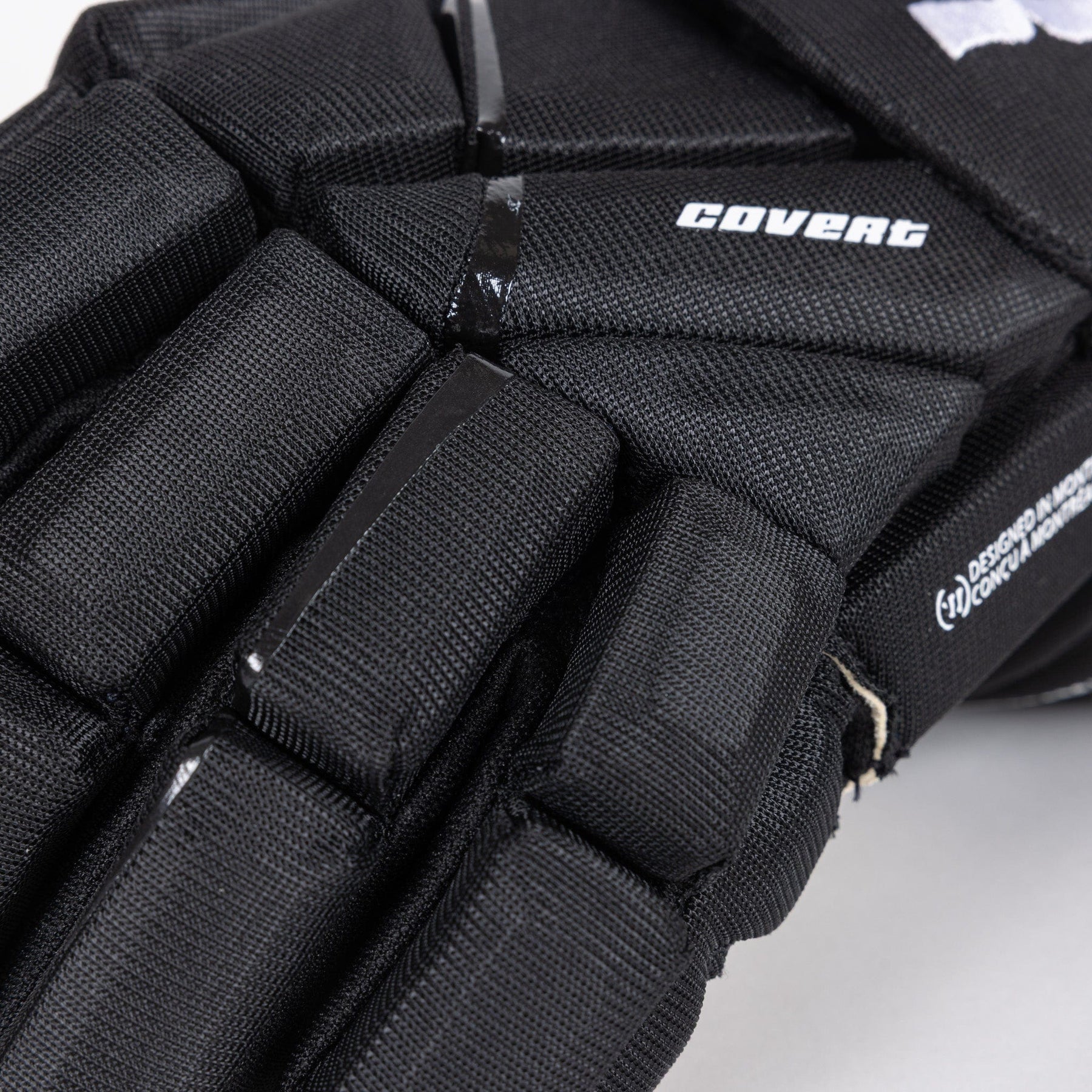The Covert Deluxe LT gloves feature a Pro Palm design. This construction is designed to provide players with a simple mix of feel and durability that enhances control during every shift.
