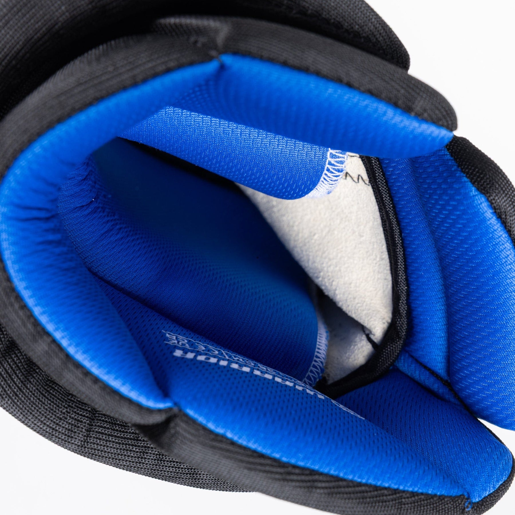 The inside of these gloves are lined with a war-tech FNC liner. Powered by Polygiene so players can always stay cool, dry and odor free on the ice. These gloves also have a buttersoft feel, with their responsive Lycra gussets, Axyflex thumb design, and anatomical stretch backhand, these provide the gloves with a buttersoft feel inside that makes them feel game-ready right out of the box.