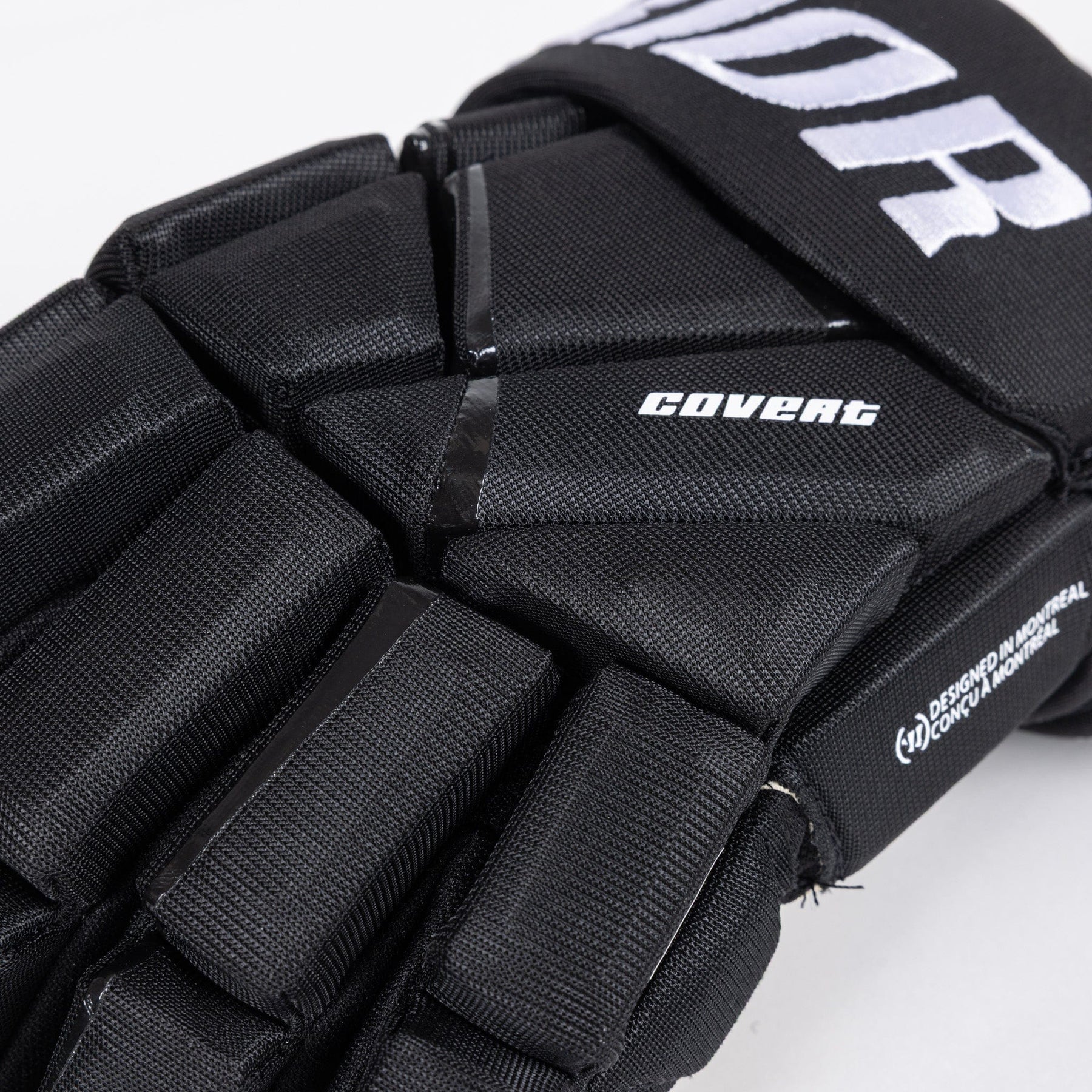 The Covert Deluxe LT gloves feature a Pro Palm design. This construction is designed to provide players with a simple mix of feel and durability that enhances control during every shift.