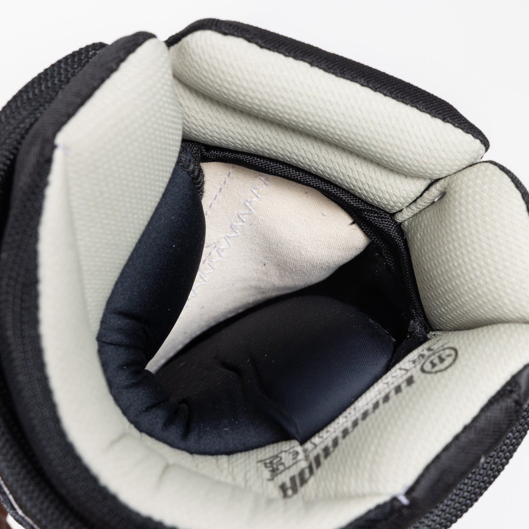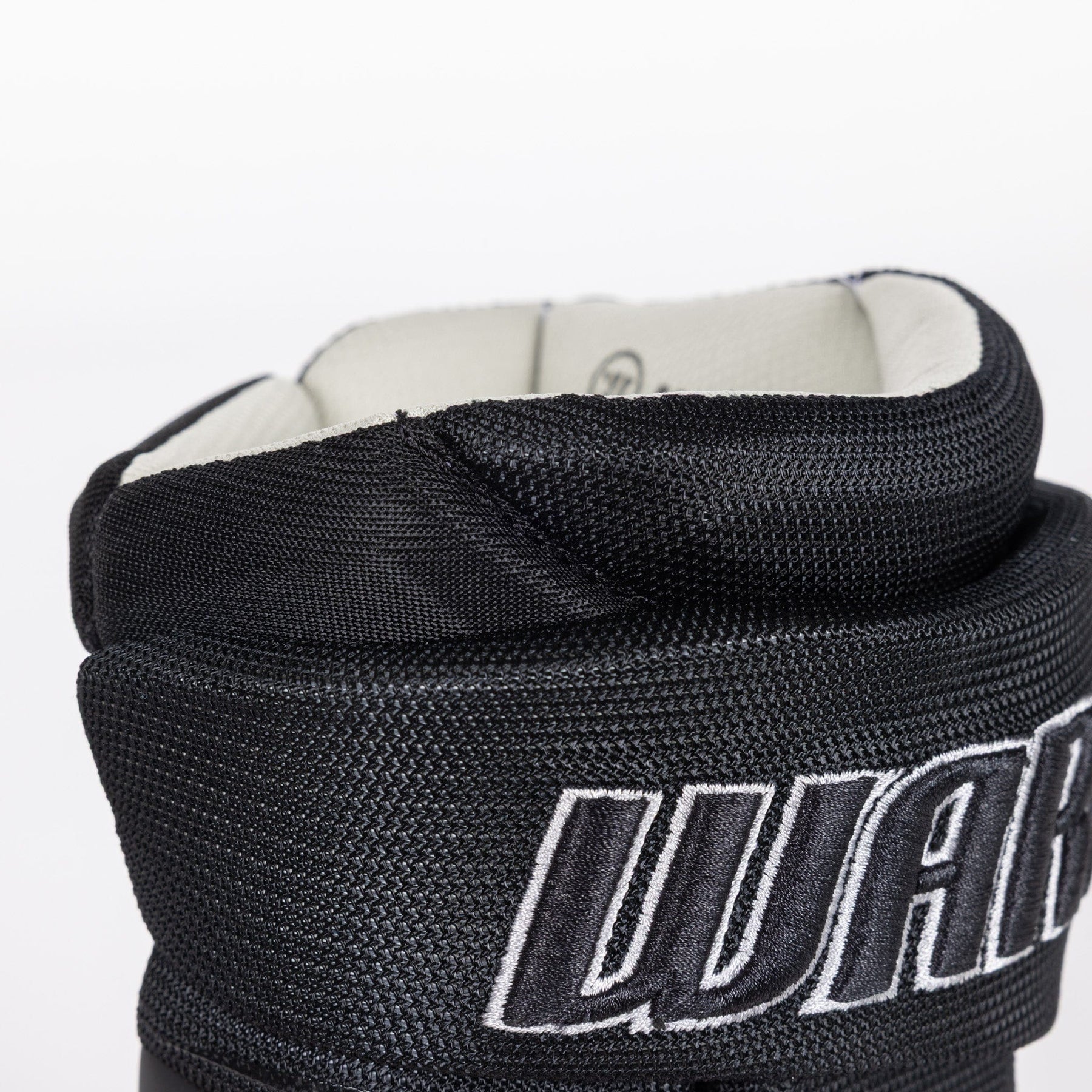 Warrior uses a Pro Cuff design when creating this glove. The cuff design allows for compromise-free movement during stick handling, and shooting, revolutionizing wrist mobility. Players are now endowed with unparalleled agility and confidence with this design, while also being protected from impacts with all the added foams and plastics.