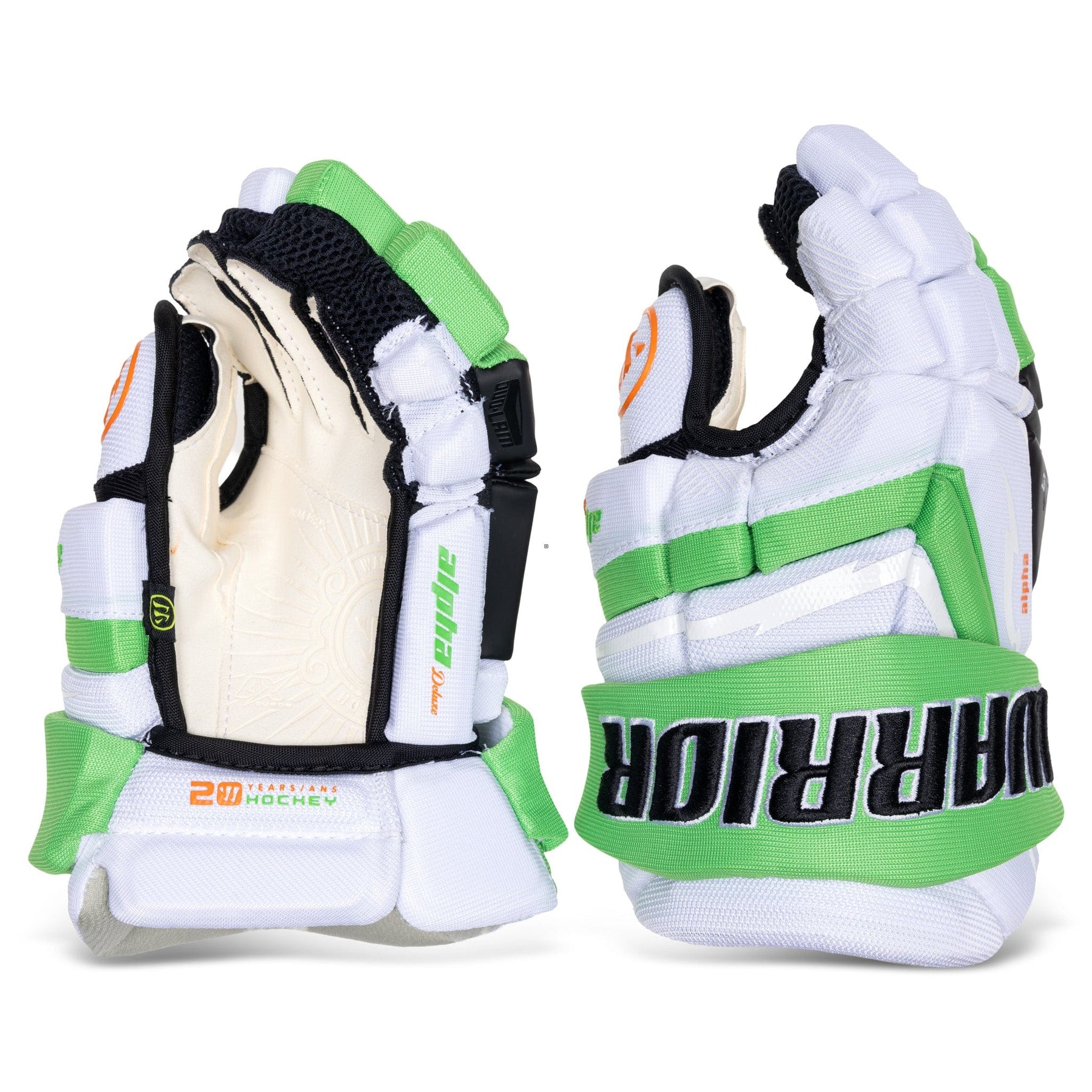 Celebrate the 20th anniversary of Warrior with the release of the Warrior Alpha Deluxe Hockey Gloves. Inspired by previous models, these gloves come with features and specs that make it a reliable option for all players. With a variety of colors and sizes available, these gloves can be part of your hockey bag this season.