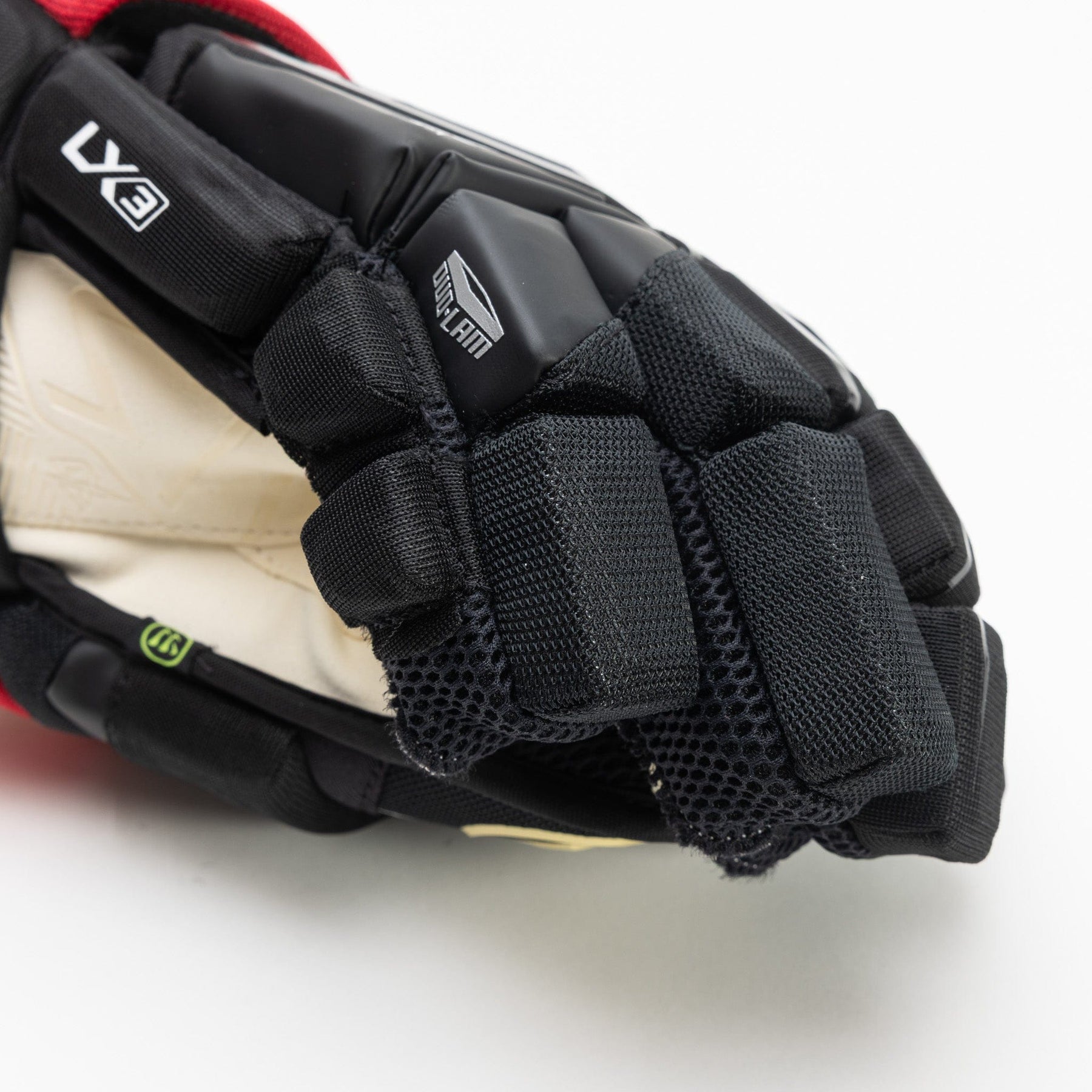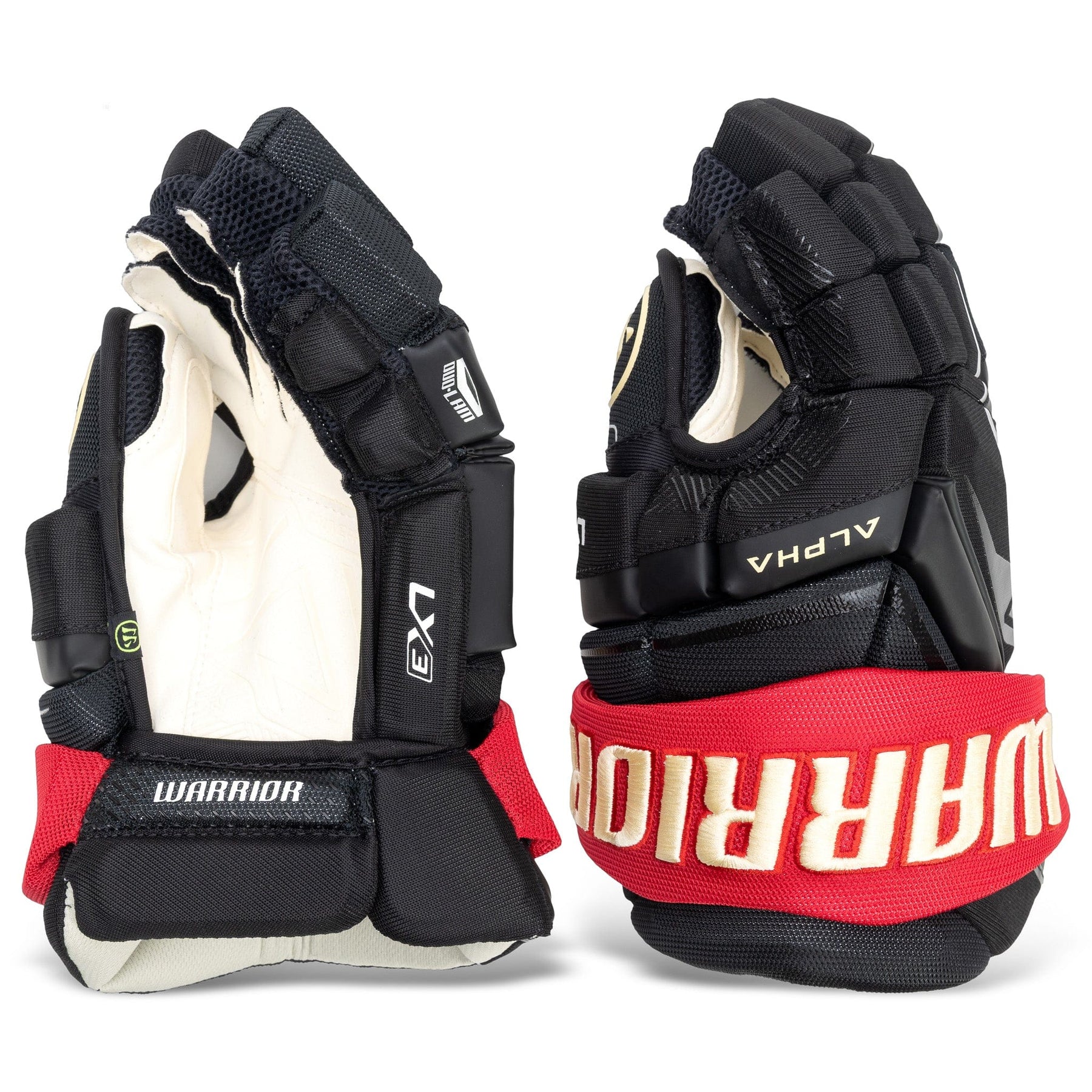 Best price guaranteed.The Warrior Alpha LX3 Pro Stock Senior Hockey Gloves are pro returns from professional hockey players. Designed with comfort and protection in mind, these gloves have integrated HD foams to provide protection in all areas. Featuring Black and Red graphics inspired by Team Canada from the 4 Nations, and available in a variety of sizes, these gloves are a great option for hockey players.