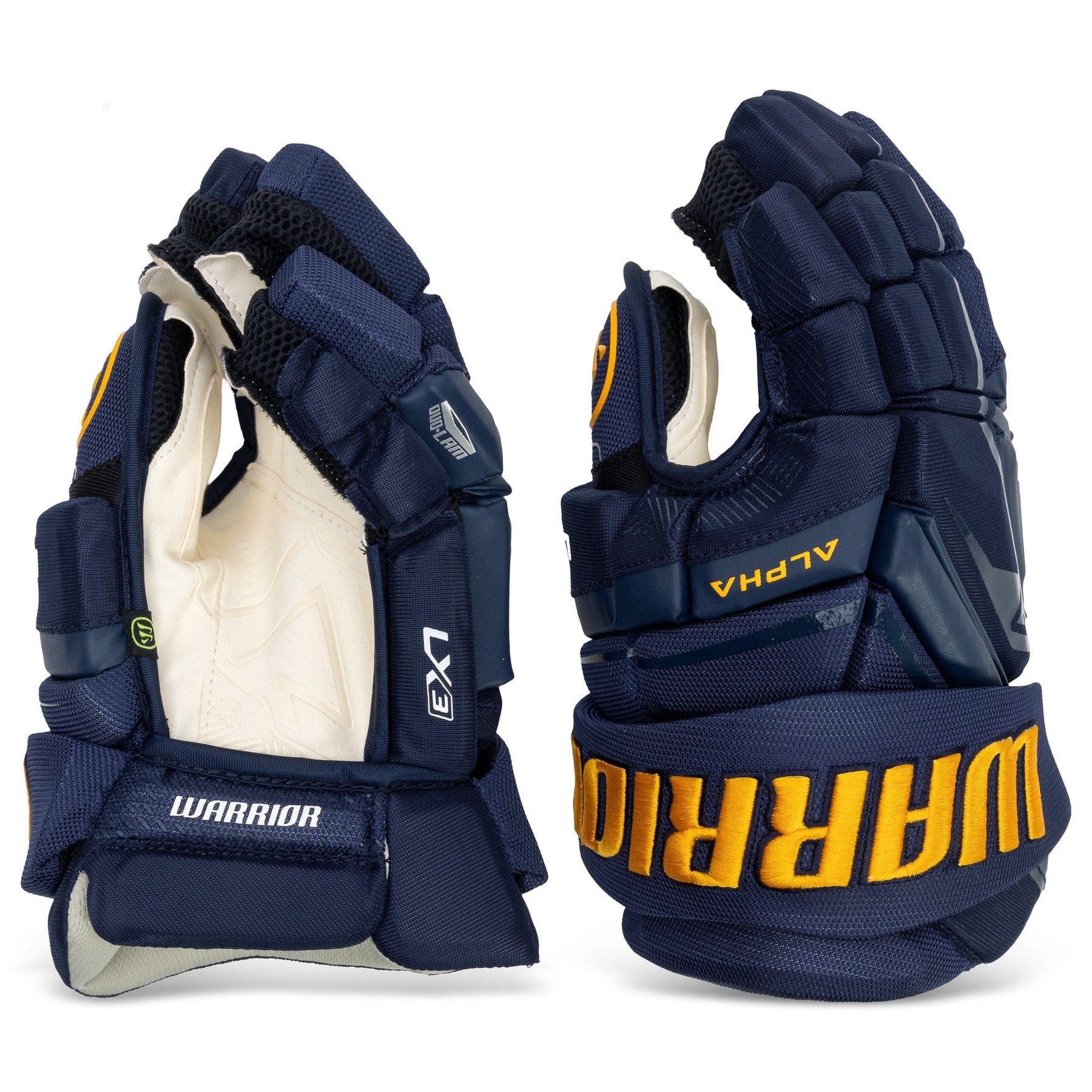 Best price guaranteed.The Warrior Alpha LX3 Pro Stock Senior Hockey Gloves are pro returns from professional hockey players. Designed with comfort and protection in mind, these gloves have integrated HD foams to provide protection in all areas. Featuring a Navy colorway inspired by the St. Louis Blues, and available in a variety of colors, these gloves are a great option for hockey players.