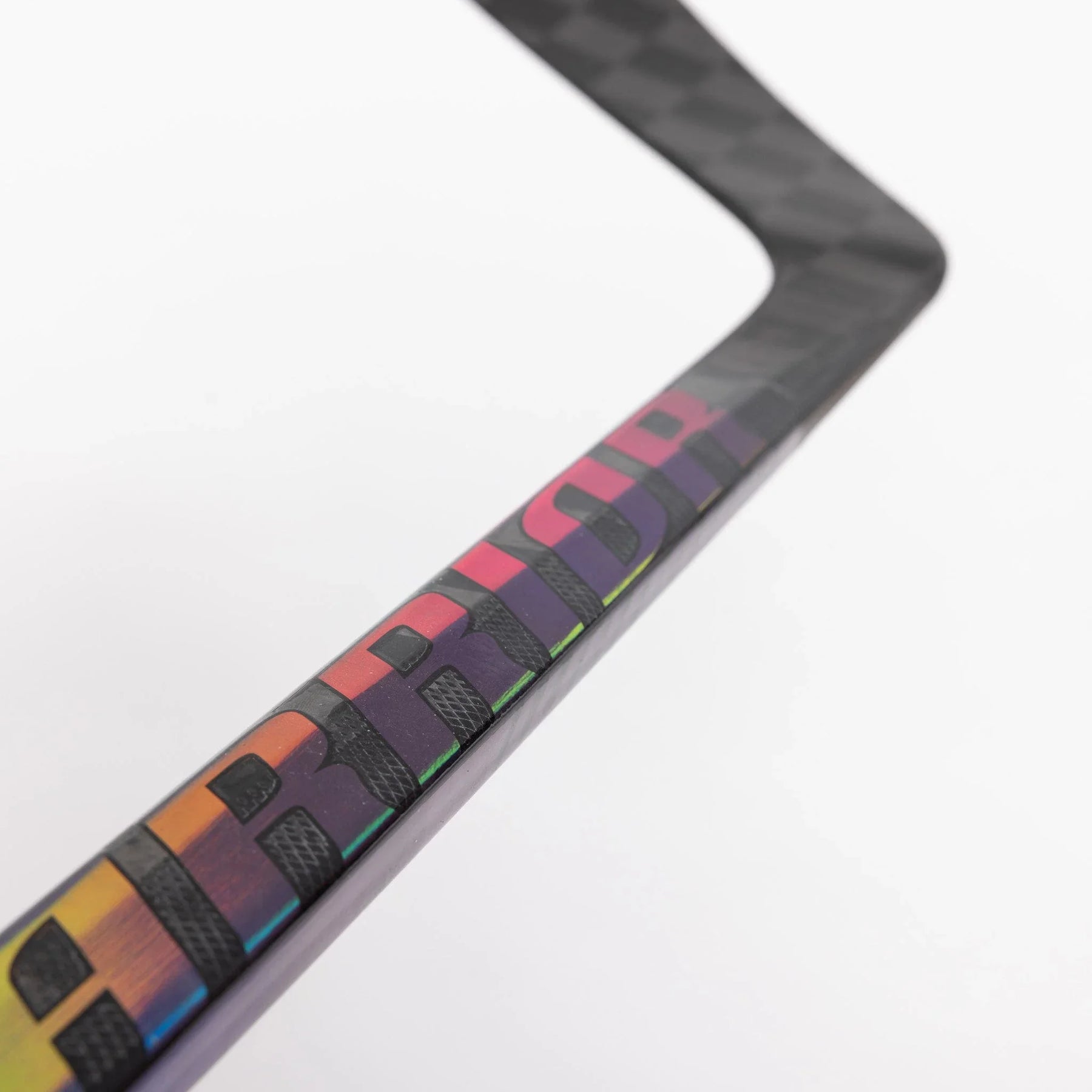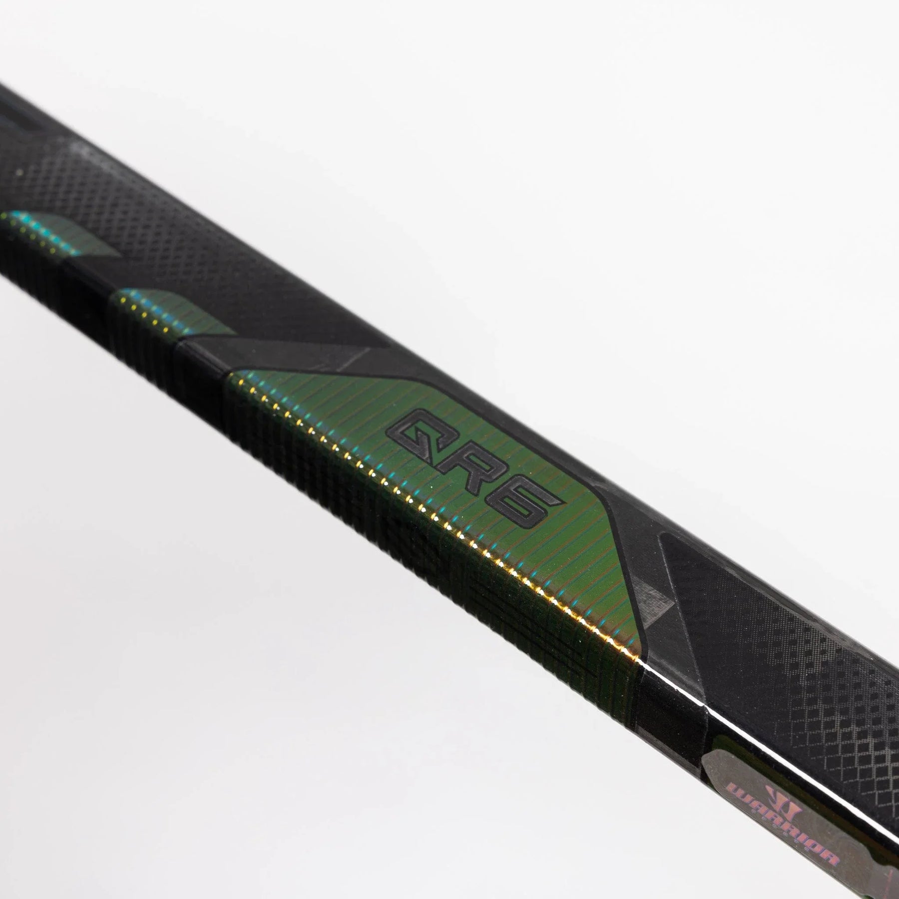 The QR6 Pro has a dark grey base, with holographic finishes found along the spine and in the Warrior logo as well as a holographic outline in the Covert lettering. The carbon layering is visible at both the top of the shaft and the blade.