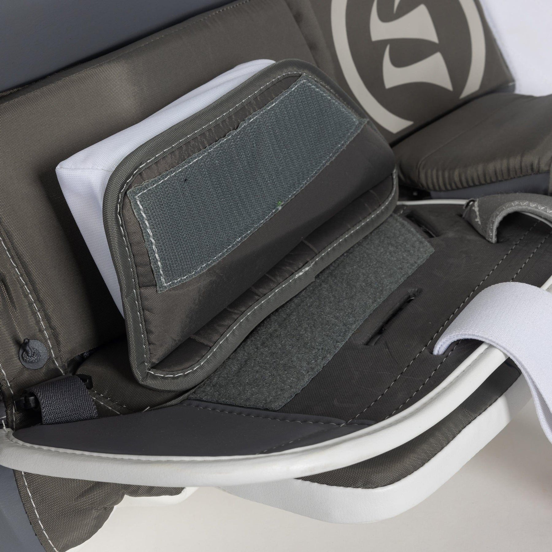 Sizing up your goalie leg pads is crucial for having total control while moving in the crease. There are two different measurements you can use to project the size of leg pad you should be wearing. The first one is your floor-to-knee measurement, which you can match up with our provided sizing charts to find the size of pad you would wear, before plus sizing. The second is the sum of your skate size, mid-ankle-to-mid-knee measurement, and your mid-knee-to-mid-thigh measurement. This measurement gives you a rough idea of what overall size pad you should purchase.