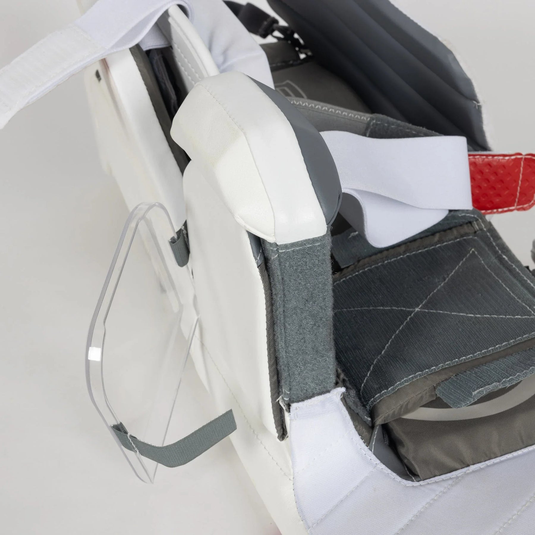 Once you have your new leg pads, you’ll need to make sure they fit you properly. To do so, you’ll need to put the pads on with your skates, as if you are about to go on the ice. There a couple things to do to check size, once you have the pads on: